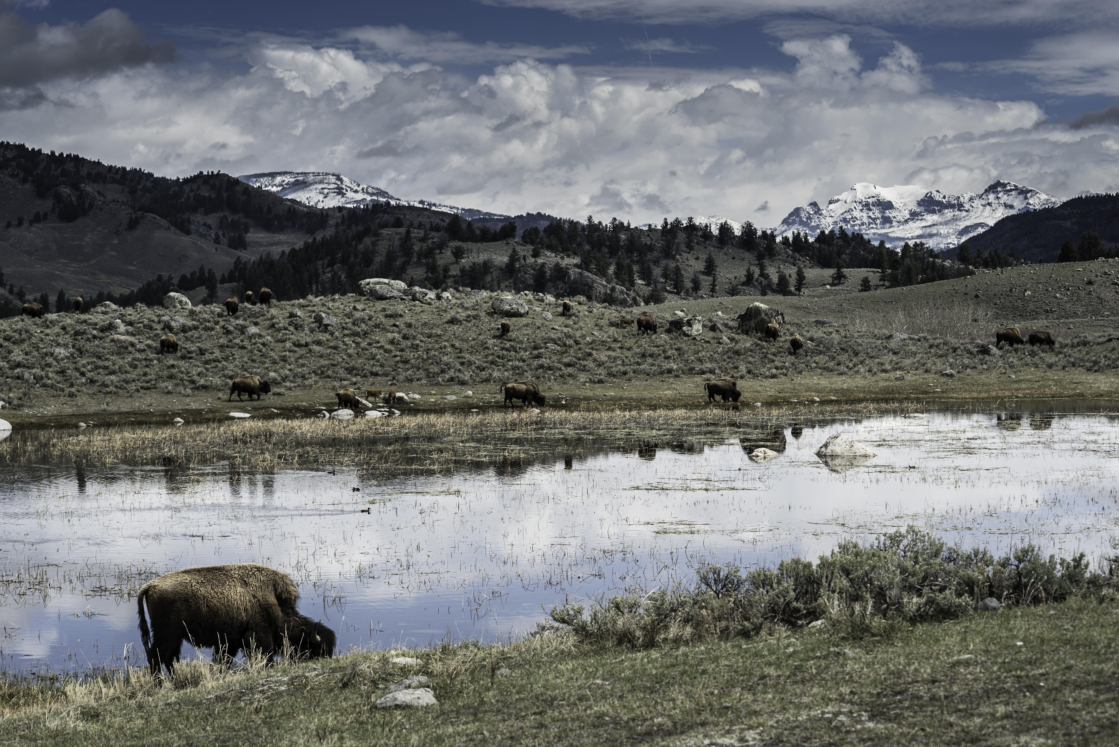 Yellowstone bison with mountains (1 of 1)